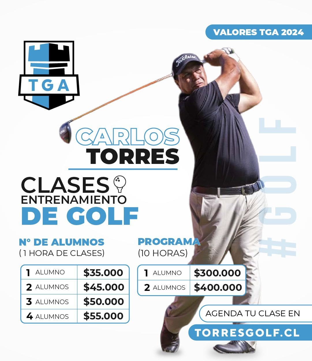 Se fundó el año 2017 por Juan Luis Torres González y Carlos Andrés Torres González, con el objetivo de contribuir a la enseñanza del Golf en Chile e innovar en la metodología de enseñanza y calidad de esta, acercando a más niños y adultos a practicar este hermoso deporte. Buscamos dar un servicio para todos los niveles con implementos y tecnología de alta calidad para nuestros alumnos.